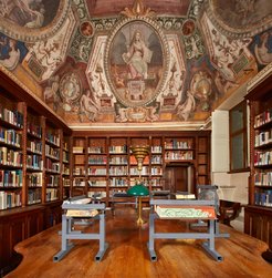 Eight international contemporary artists were asked to freely experiment with the ancient tradition of fore-edge book decoration with paintings and illustrations, giving life to new artworks of a hybrid nature, in some cases invisible at a first glance. The books transformed into works of art by Tauba Auerbach, Kerstin Brätsch, Cansu Çakar, Enzo Cucchi, Camille Henrot, Victor Man, Andrea Salvino and Andro Wekua are exhibited at the MACRO and in the Sala del Disegno of Palazzo Zuccari, the ancient reading room designed and planned by our founder Henriette Hertz in the early twentieth century, which is decorated with frescoes by the painter Federico Zuccari (1540–1609), who designed the building and started the construction at the end of the sixteenth century. The frescoes celebrate the personification of the discipline of Drawing as the father of the arts (painting, architecture and sculpture) and as a key element of the speculative sciences, music, medicine and military disciplines. This allegorical decoration enhances the intellectual emancipation of art, a key element in Zuccari's plans for his palazzo, which was indeed meant to house an academy and residence for artists. Along the lines of this passion for art and publishing, the Bibliotheca Hertziana and MACRO present Fore-Edge Painting, to which each contemporary artist has contributed according to their own free interpretation.